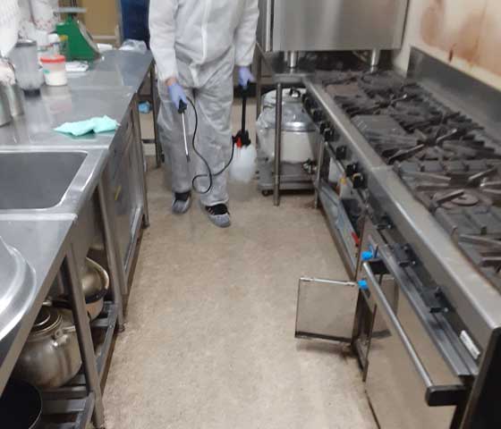 飲食店厨房内の空間除菌作業